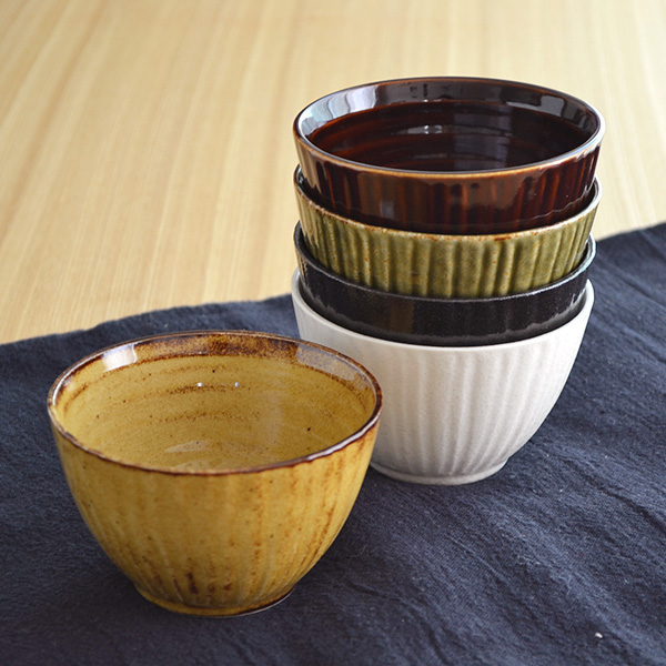 こちらの12個セットは、白ガラス・黒ゆず・織部・せらしの・カラメル・アメの6色を2個ずつセットになっているので、その日の気分や料理にあわせた和カラーの使い分けられます。