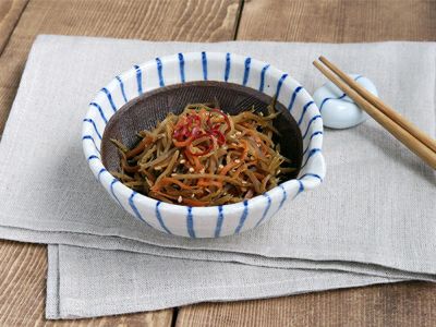 内側の濃い茶色と青い十草模様が食卓に彩りを添えてくれます。