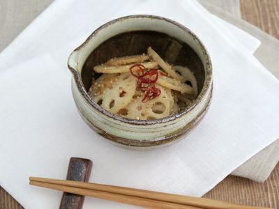 あらかじめ白ごまをすってあったすり鉢にれんこんを入れて和えればOK!