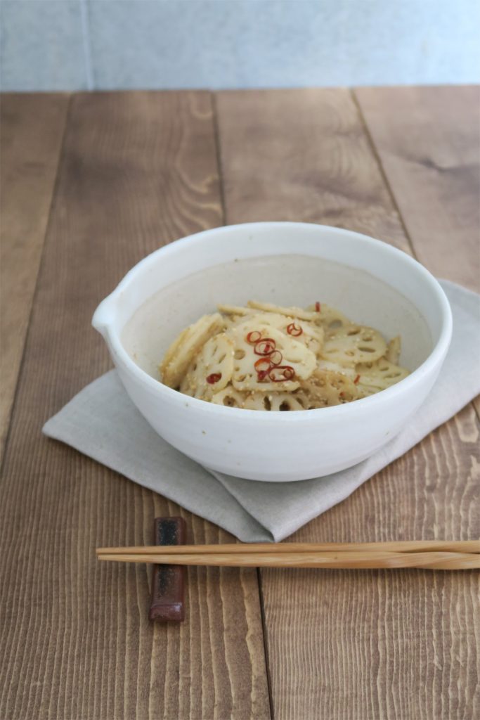 白いすり鉢に盛り付けるとモダンな印象になります。