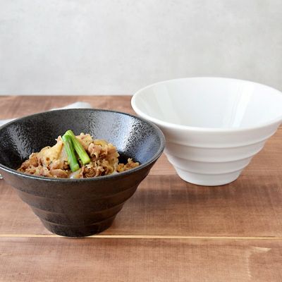 ボーダーラインとスタイリッシュな台形型がモダンな雰囲気のどんぶり。シンプルな盛り付けも本格派に見せてくれます。