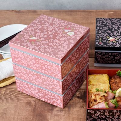 重箱 和モダンオードブル 桜柄 スクエア3段重 14cm ブラック / 4,400円(税込)
