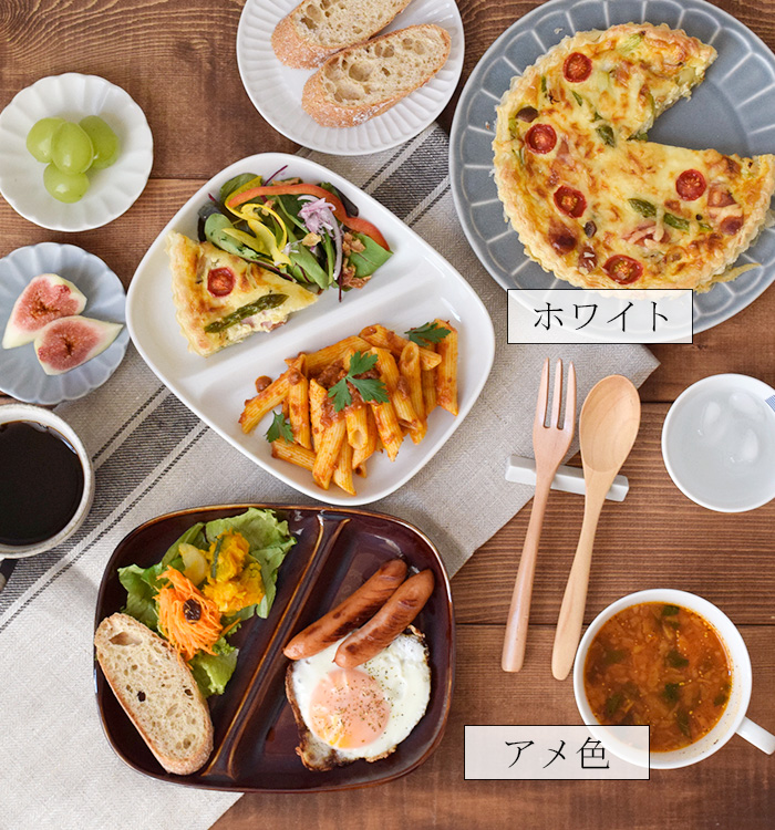 お子様にもお母さんにも使いやすい仕切りランチプレートは、色違いのアメ色も取りそろえておりますので、親子で色違いで楽しんでみてもよさそうですね。