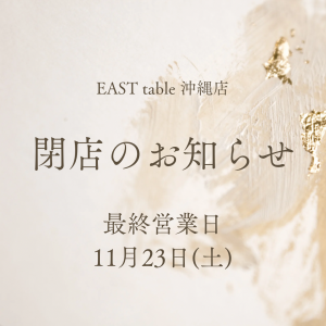 このたびEAST table 沖縄店は、2024年11月23日をもちまして、閉店することとなりました。