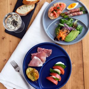 大皿や中皿のような丸型のランチプレートは、パスタとサラダといった定番の組み合わせもいいですが、おかずやおつまみを何品か乗せればレストランのワンプレート風に。