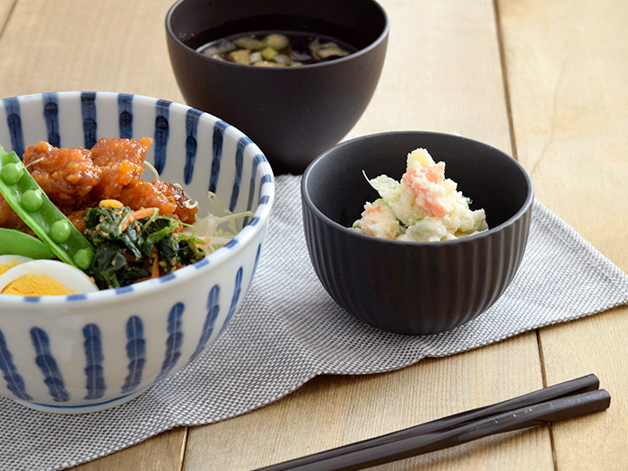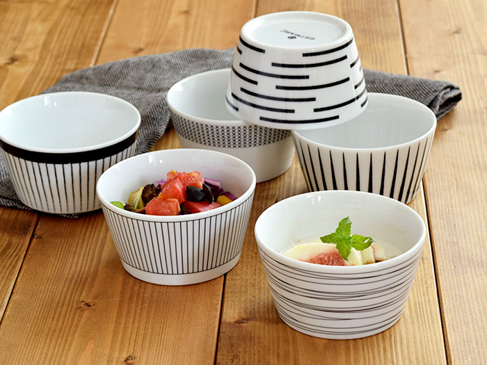 和のスモールボウル (アウトレット) 6色セット / 1,500円(税込) スープボウル、副菜の小鉢、デザートボウルなど、色々使える小ぶりなボウルが全色揃うセット。 6色の和カラーはいずれもモダンな雰囲気で、和食器はもちろん洋食器とも合わせられます。