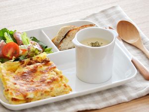 大皿やカフェプレートとも相性がよく、ココットにスープやサラダを盛り付けた一品料理をぽこっと乗せるだけで、カフェメニューのようなワンプレートが完成!
