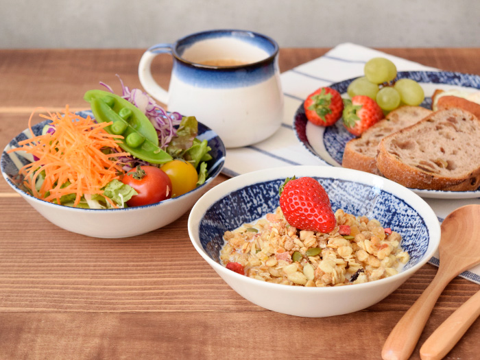 また、昔から日本人の間では藍染などによって、日常から青色が入った和食器に親しみ、さまざまな濃淡やデザインが継承され現在も好まれています。