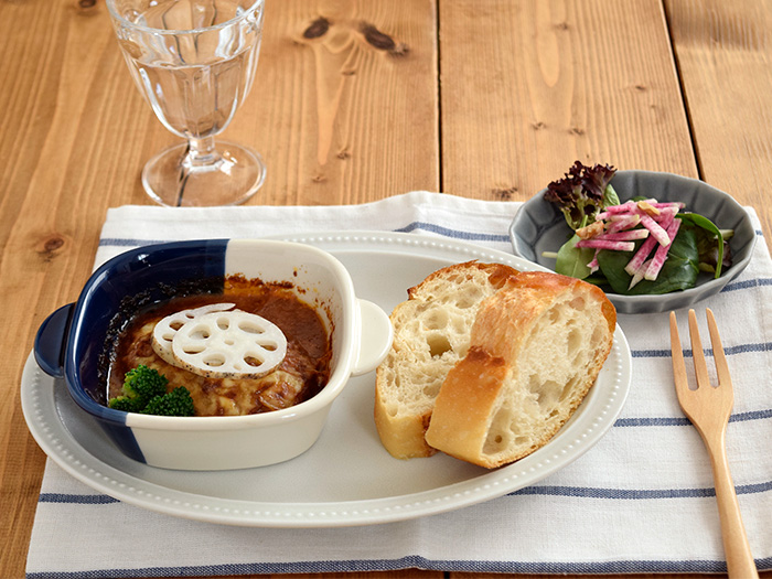 容量130ccと小さめのグラタン皿は、モーニングやランチのサブメニューにちょうどいい大きさ。