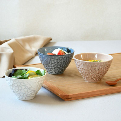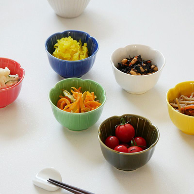 食卓に並べれば、まるでお花が咲いたかのように、華やかになる小鉢。 和え物やお浸し、ちょっとした一品料理を盛りつける他に、サラダボウルやスープボウルとして使ってもOK。 ヨーグルトボウルやシリアルボウルなど、和洋中問わず使えます。あんみつなど和のデザートにも良く似合いますよ。