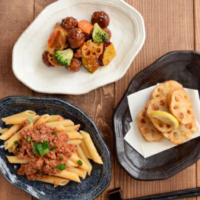 個性的な変形型がおしゃれな和食器プレート。楕円のような形で、テーブルの上でも扱いやすい大皿です。