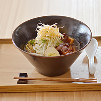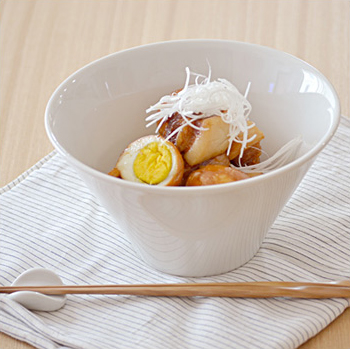 台形のフォルムがモダンなボウルです。サラダや煮物、丼ぶりにと幅広く使え、お店のような盛りつけが楽しめる器です。