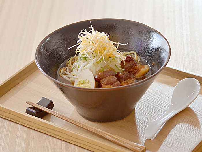 写真では、麺の上にもやし炒め、豚の角煮、煮玉子、ネギを乗せてみましたがまだ余裕です!