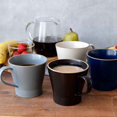 「エッジライン」シリーズのマグカップ。 マットな光沢とシンプルな佇まいが洗練された飽きのこないデザイン。 どんなプレートに合わせても素敵に演出してくれます。