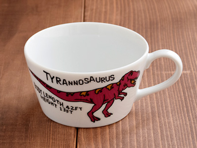 カップの裏側には、ティラノサウルスの足跡がちらりと見えるのもポイント。
