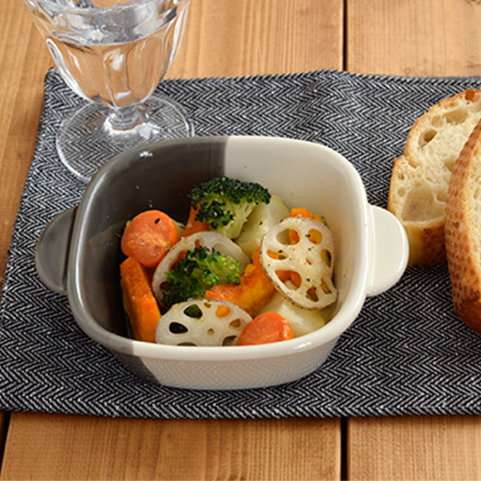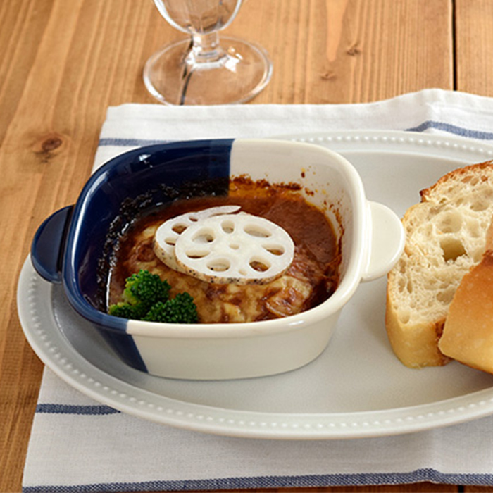 グラタンをサブメニューに。子供用にもOKのかわいいサイズ。 グラタン皿 正角 バイカラー minoruba(ミノルバ)