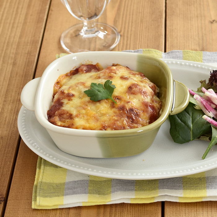 グラタンやラザニア、オーブンで仕上げたハンバーグなどを、食卓のサブメニューにしたい時に活躍してくれる小ぶりなサイズ。