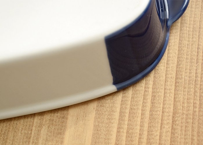 また、両側に持ち手がついているので、熱々の器もミトンなどで掴みやすく、オーブンから取り出すときや食卓へ運ぶときも安心です。耳が大きすぎないのも、お料理の邪魔にならず嬉しいですね。