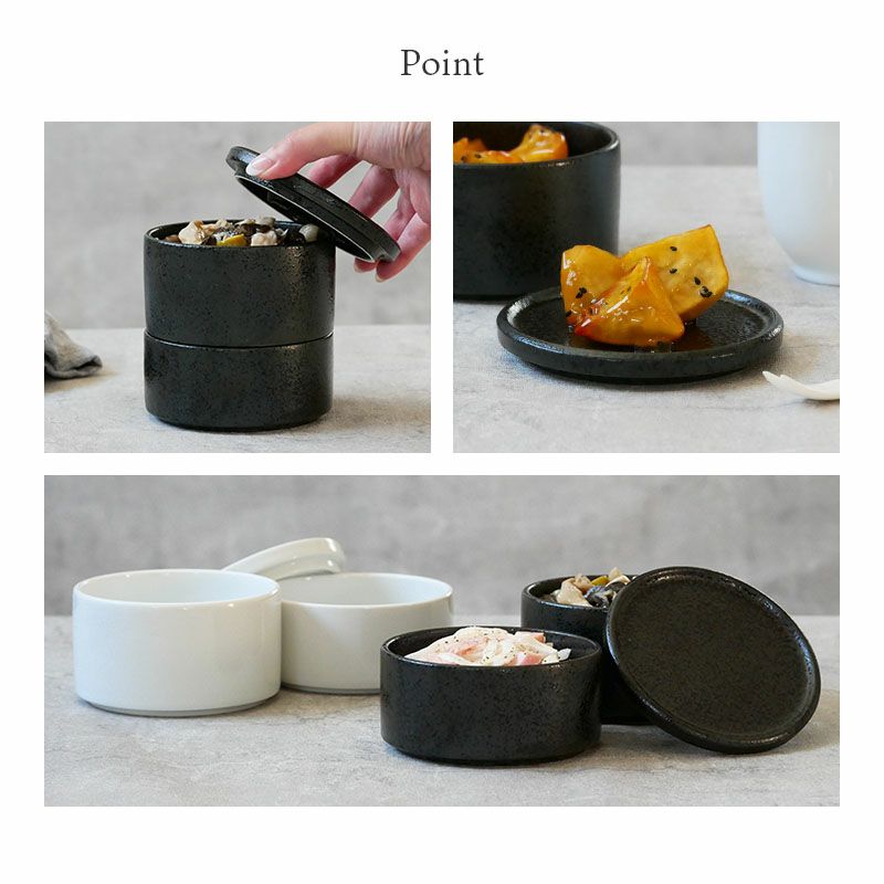スタッカー 12cm 黒耀 2段 蓋付き