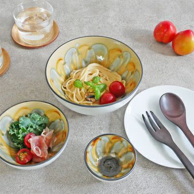 しっかりとした大きさなので、盛り鉢としてはもちろん、一人分の麺類・丼ぶり料理に最適サイズ。サラダボウルや煮物の盛り鉢として使ったり、華やかなのでパーティーのおもてなしにもぴったりです。フルーツポンチなどのデザートもワンランク豪華に見え、テーブルが明るく華やぐ存在感のある食器です。