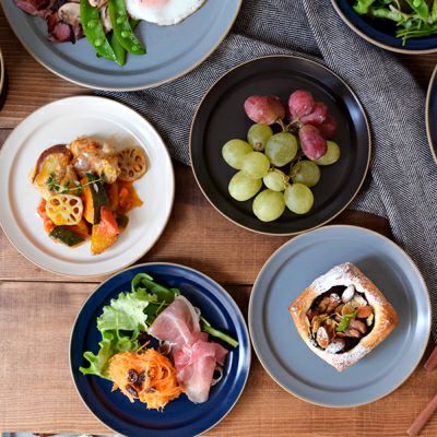 マットな光沢とシンプルな佇まいが洗練された印象のプレート。前菜やサラダはもちろん、ケーキなどデザート皿としてもお使いいただけます。