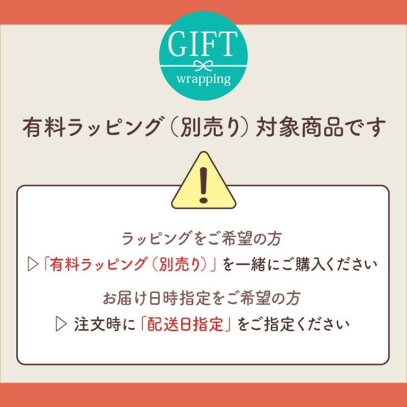 大切な方へのギフトに、有料ラッピングをご用意いたしております。 落ち着いたネイビーの包装紙にアイボリーのリボンの包装か、熨斗紙のお好きなラッピング方法をお選びいただけます。 ラッピング1個につき、紙袋を1枚お届けいたします。親しい方、目上の方問わず大切な方へのギフトにおすすめのラッピングです。