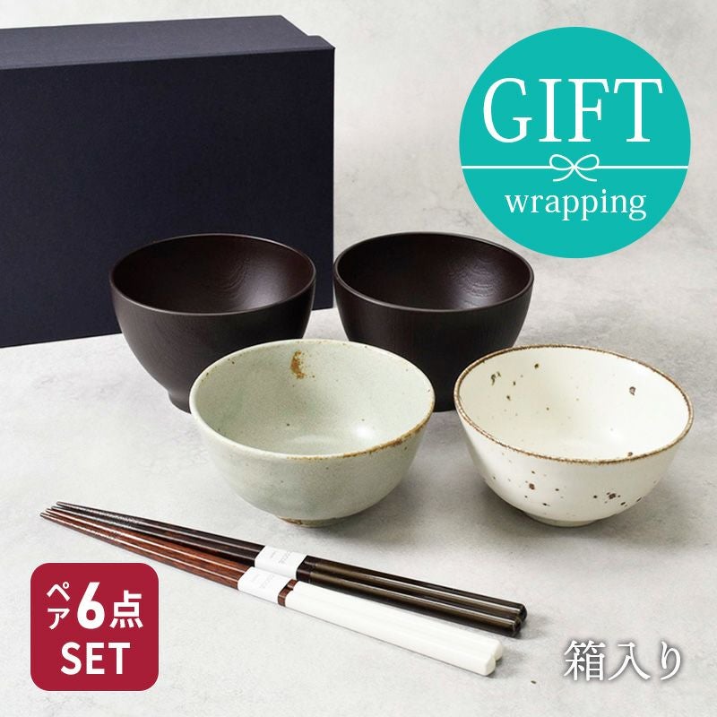人気のご飯茶碗、お椀、箸の箱入り食器ギフト。ペアセットですので、結婚祝い、引っ越し祝い、新生活祝いなど、ご夫婦やカップルへの贈り物にはもちろんオススメ。