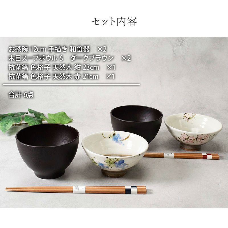 他の画像を見る 【有料ラッピング対象商品】夫婦・カップルへのギフトに喜ばれる茶碗・汁椀・箸の食器セット。 和食器ギフト 刷毛巻十草お茶碗&お椀&箸ペアセット 送料無料 青×赤 当店特別価格 ¥ 3,500 税込 詳細を見る お気に入りに登録する