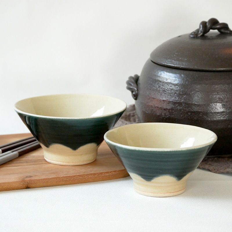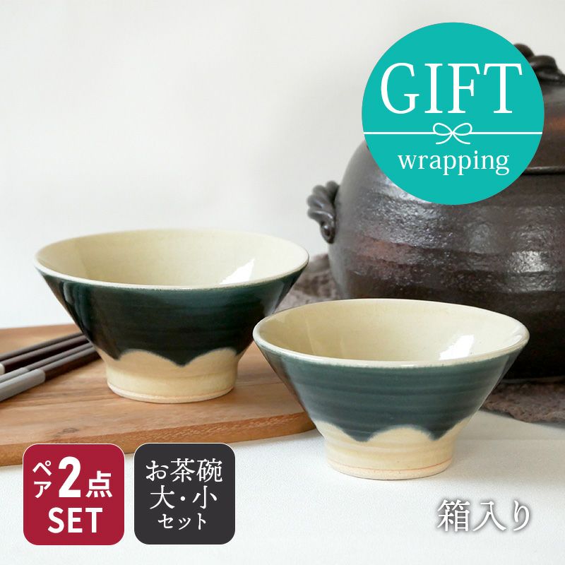 ご夫婦やカップルへの贈り物にオススメの、お茶碗2点・お椀2点・箸2点の合計6点をボックスに入れた、ギフトセットです。お茶碗はひとつひとつ作られた手造りの陶器茶碗。同じ商品でも色合いや柄のつけ方、釉薬のムラ、形状やサイズが異なる場合がございます。手作りならではの表情豊かな仕上がりが人気です。 和洋問わず使え、スープボウルや小鉢にしてもOK。