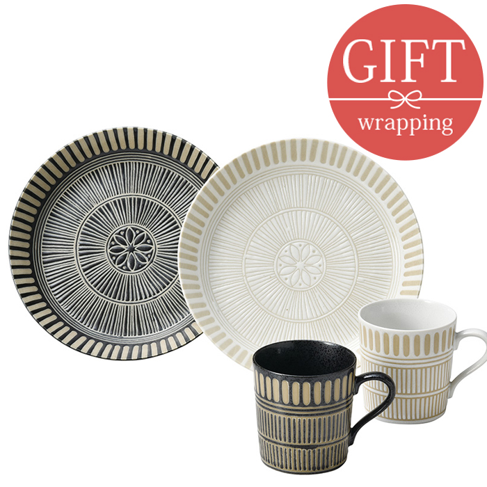 上品なモノトーンがスタイリッシュなペア食器4点入りギフトセット。