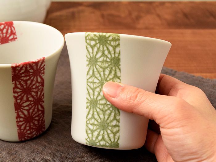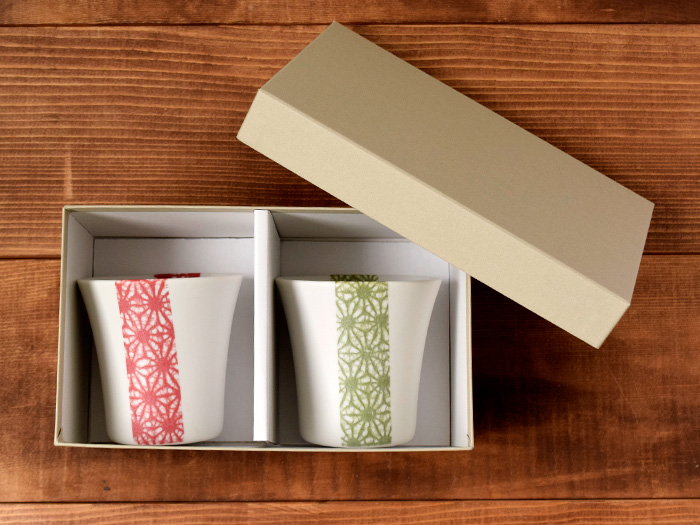 和モダンな麻の葉ペア湯呑みセット