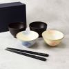 【有料ラッピング対象商品】華やかでおしゃれなお茶碗、汁椀、お箸のペア食器セット。