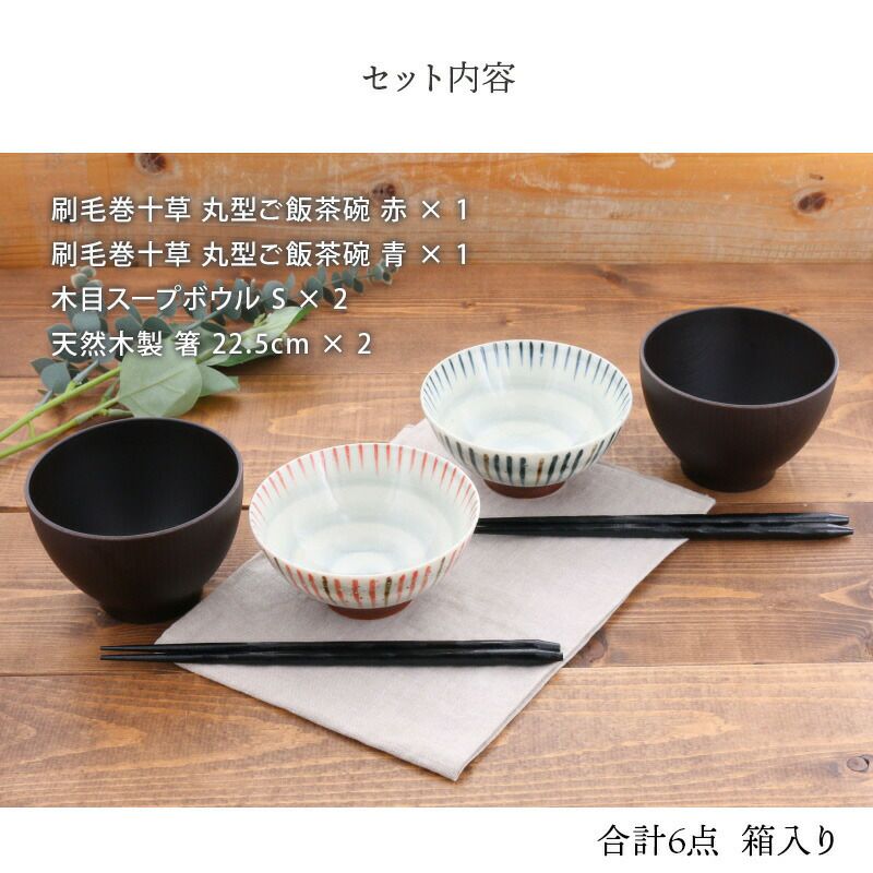 他の画像を見る 【有料ラッピング対象商品】夫婦・カップルへのギフトに喜ばれる茶碗・汁椀・箸の食器セット。 和食器ギフト 刷毛巻十草お茶碗&お椀&箸ペアセット 送料無料 青×赤 当店特別価格 ¥ 3,500 税込 在庫切れ 詳細を見る お気に入りに登録する
