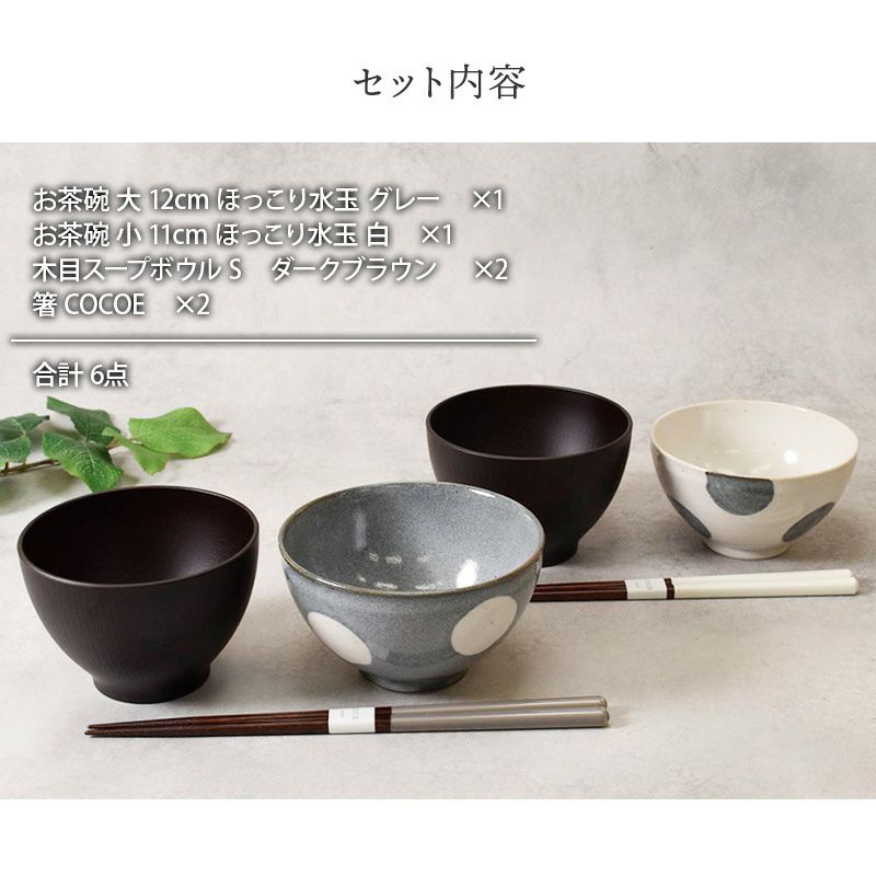 他の画像を見る 【有料ラッピング対象商品】夫婦やカップルへの贈り物にぴったりな茶碗・汁椀・箸の食器セット。 和食器ギフト ほっこり水玉お茶碗&お椀&箸ペアセット 送料無料 グレー×白 当店特別価格 ¥ 6,600 税込 在庫切れ 詳細を見る お気に入りに登録する