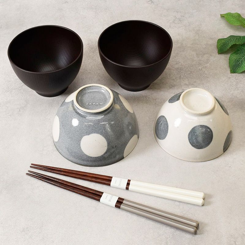 他の画像を見る 【有料ラッピング対象商品】夫婦やカップルへの贈り物にぴったりな茶碗・汁椀・箸の食器セット。 和食器ギフト ほっこり水玉お茶碗&お椀&箸ペアセット 送料無料 グレー×白 当店特別価格 ¥ 6,600 税込 在庫切れ 詳細を見る お気に入りに登録する