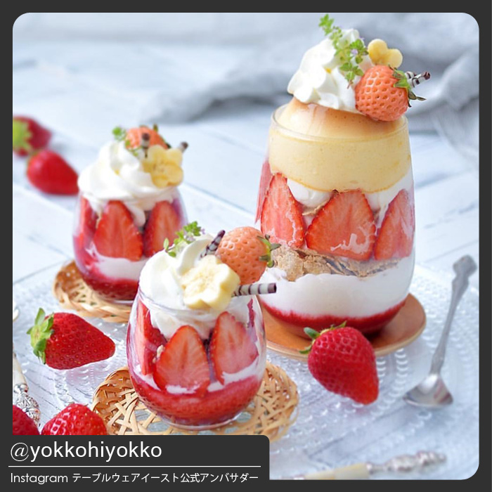 スイーツカップ、アイスカップなど、デザートにオススメです。プリンやゼリーなど、様々なスイーツを盛りつけて楽しめます。