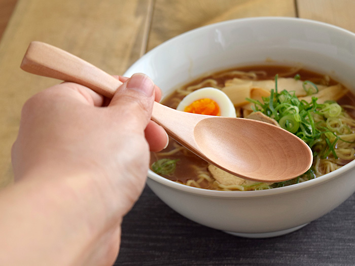 ラーメンの蓮華や、お粥やスープ用のスプーンなどに便利な木製れんげ。