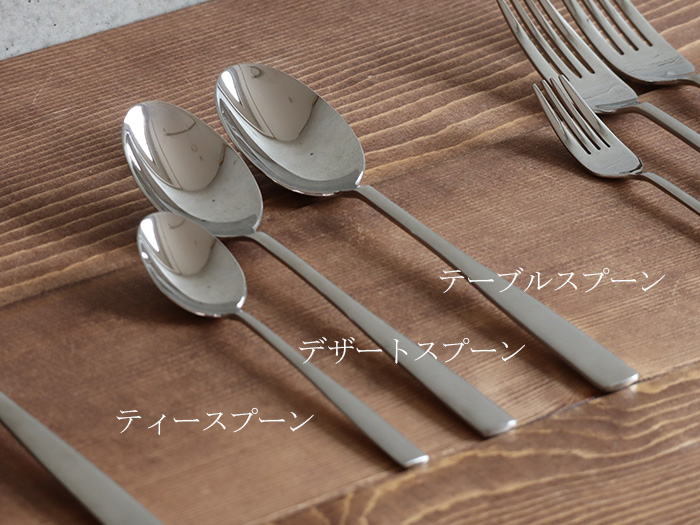 燦(SAN)シリーズでは、ティースプーンの他、デザートプーン、テーブルスプーンをご用意。