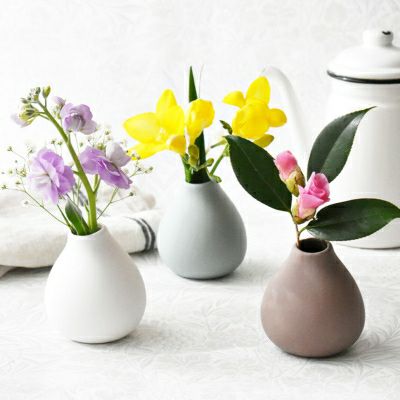 マットな質感の陶器の花器です。水アカなどが目立たないのも嬉しいポイント。 ニュアンスカラーと愛らしいフォルムのフラワーベースはお部屋をおしゃれに彩ってくれます 。