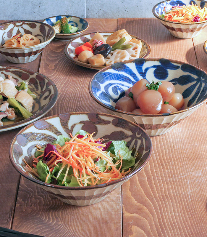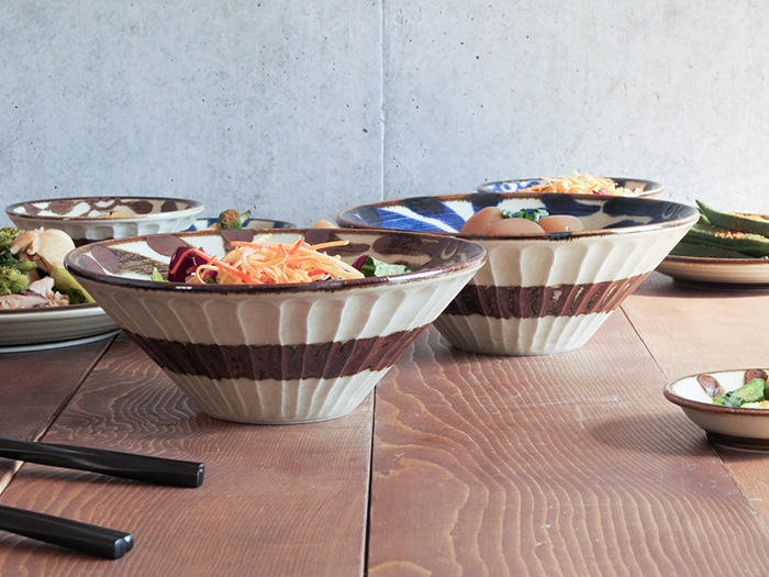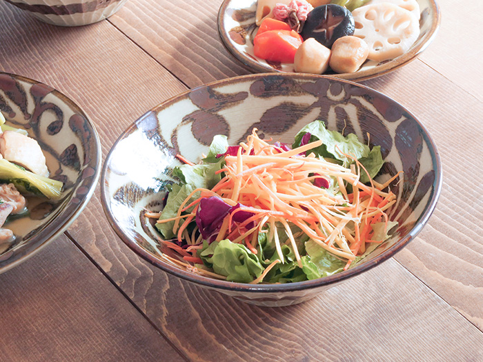 大鉢は、煮物鉢、揚げ物などの盛り鉢、サラダボウル、デザートボウルの他、丼ぶりや麺鉢にもなるマルチサイズ。毎日の食卓で出番のある食器です。