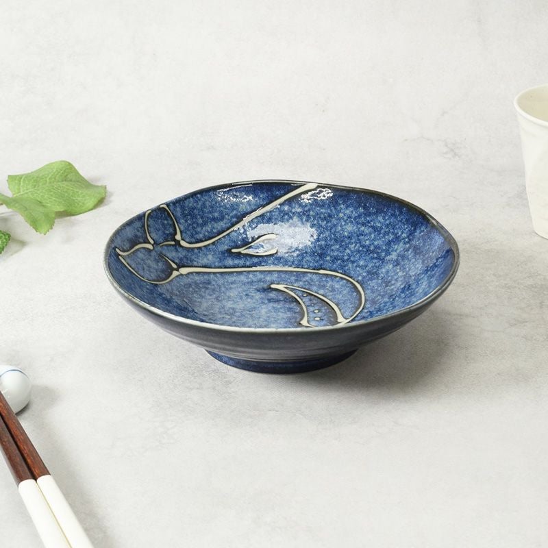 深海のような藍が映える、くじら模様の煮物鉢