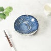 深い青に白が映える、上品な渦模様の変形中鉢
