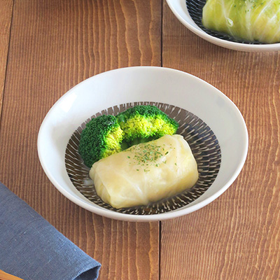 手頃に使える白い素地に、巻き付けたような太いラインが和食器らしい存在感。食卓にも違和感なく馴染んでくれますよ。