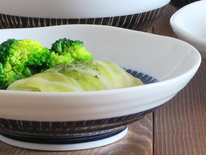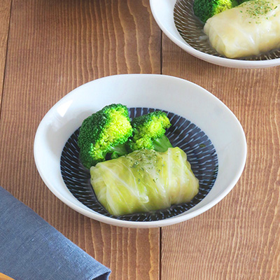 シックなテーブルコーディネートにも相性のいいネイビー。赤や緑といった野菜と相性がいいので、洋風サラダの盛り付けにも大活躍。