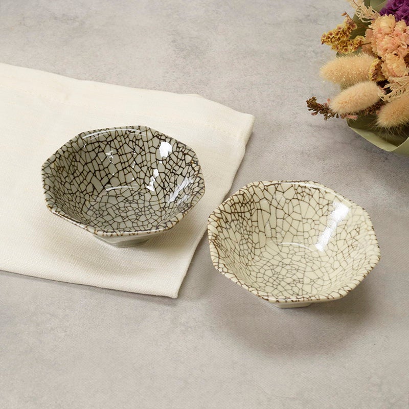 全体に貫入が施された、シックな美しさの八角鉢。