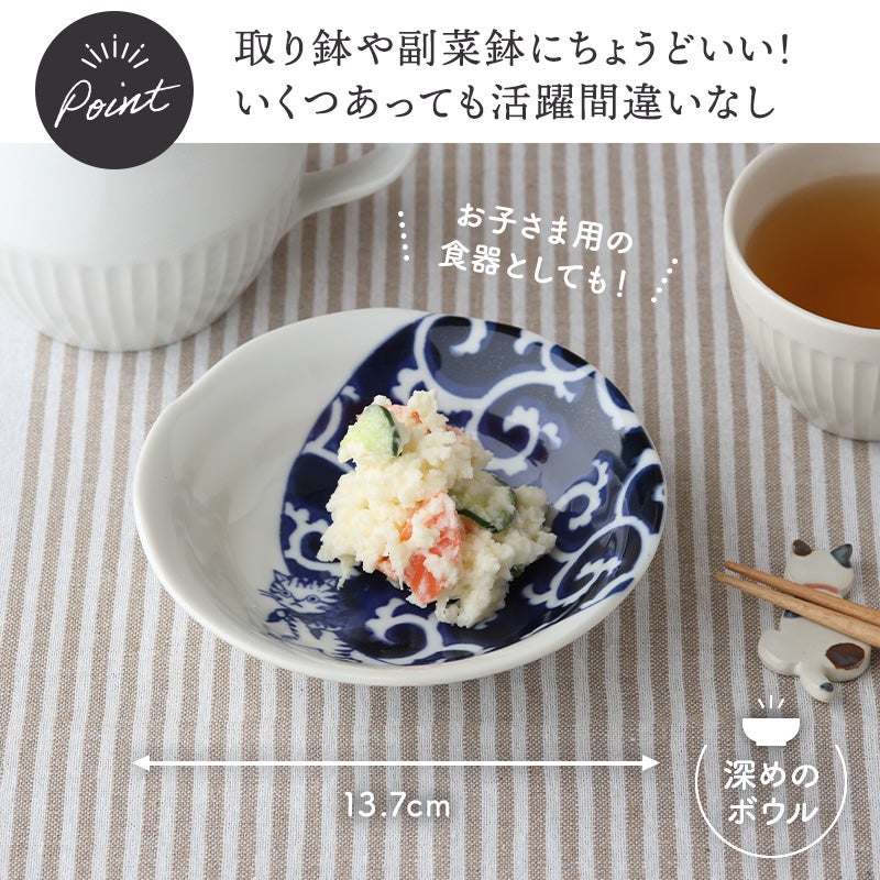 一人でご飯が食べられるようになったお子様はお手伝いをしたがるお年頃でもありますよね。 小鉢はお子様の小さな手にもぴったり馴染むので、食べるのにもちょうどいい大きさで、子供用食器としても活躍します。プラスチック製より、せとものの方が安定感があり、食事中に器を倒しにくく小さなお子様も食べやすいです。また食器の扱いについて自然と身につき、食育の一環としてもお使いいただけます。 そしてプラスチック製より油汚れも落ちやすく洗いやすいメリットも。動物や花柄など子供の好きな模様が入っていれば食事の時間が楽しくなりますよ。