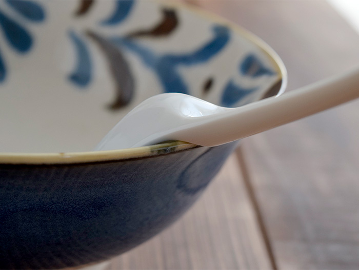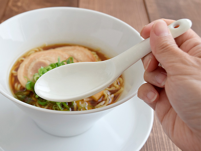 こちらは、通常の蓮華と比べると口に入れる部分がやや大きめに作られています。そのため、スープだけでなく具材もしっかりすくえるのがポイント。