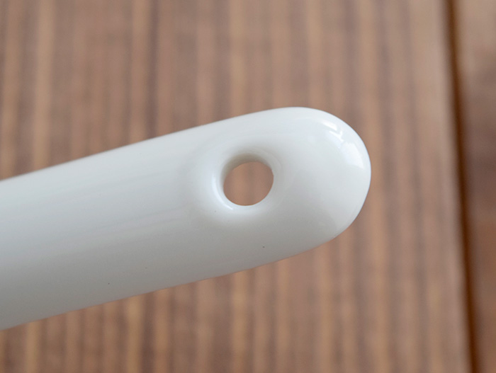 持ち手の先に穴が開いており、洗った後にフックや紐にひっかけて置けば、片付けや水切りにも手間取りませんよ。
