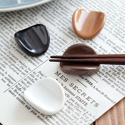 形も、約2つのカトラリーを置くことができる三角型、包み込むようにまるで昔の耳皿のようなカーブ型、高さがあり使うのが楽しみになるコマ型、気軽に使えてフォークやスプーンも置きやすいバチ型と、シンプルながらこだわりの形をそろえています。カラーもベーシックなブラックやホワイト、ブラウンなど、定番カラーを取り揃えたオリジナルデザインです。
