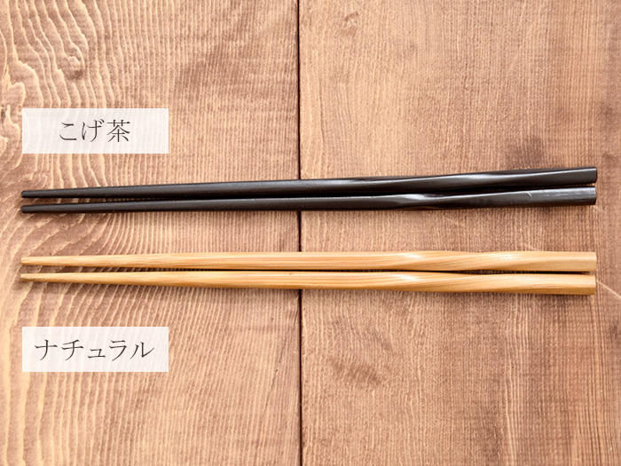 焦げ茶とナチュラルの2タイプあるので、ペアで揃えたり、夫婦箸としてもお使いいただけます。